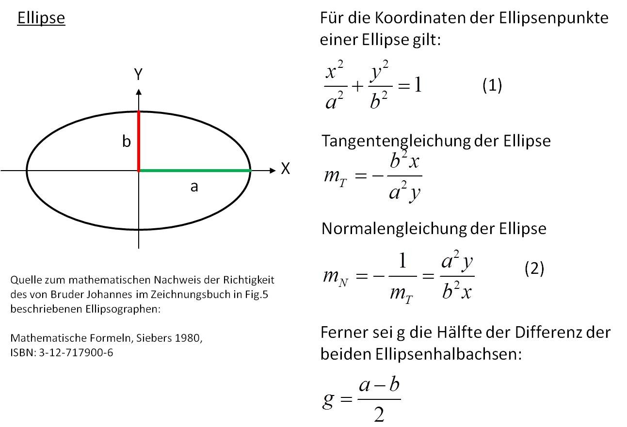 Verblüffend ist, dass die für den Bau eines solchen Ellipsographen notwendige Mathematik heutzutage nur in einer gymnasialen Oberstufe bzw. in einem Ingenieur-Studium vermittelt wird. Bruder Johannes hatte keine solche Ausbildung durchlaufen. Man darf annehmen, dass Bruder Johannes einen guten Mathematik- und Geometrie-Lehrer hatte; leider finden sich in seinen Briefen dazu keine Hinweise.