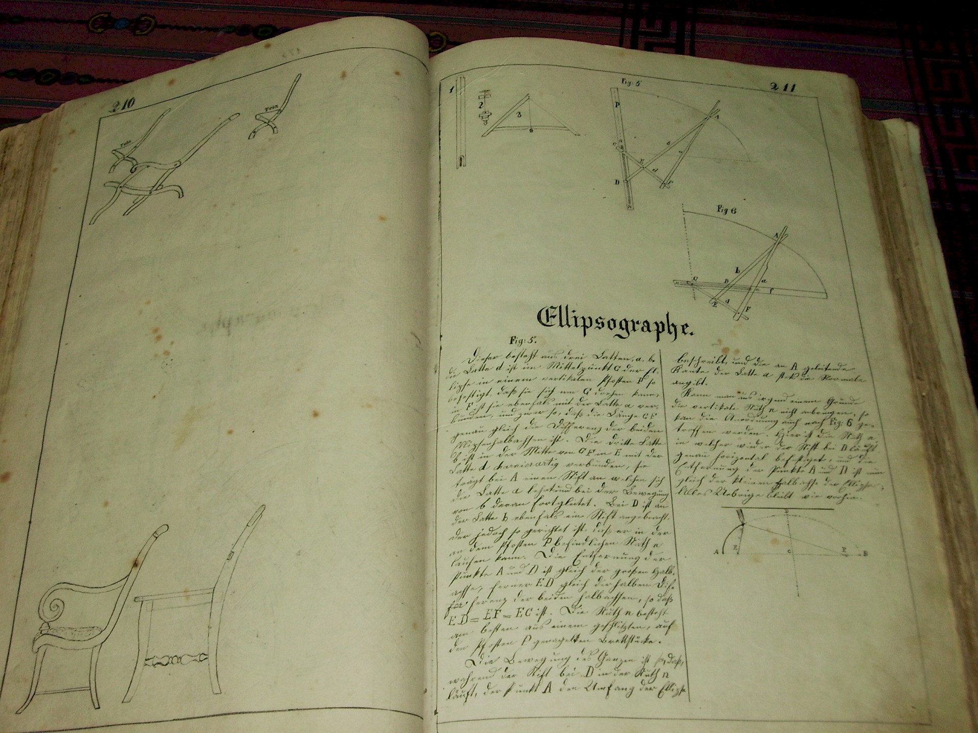 Im Zeichnungsbuch (Link: Bilder vom Zeichnungsbuch) von Bruder Johannes befindet sich auf Seite 211 eine Anleitung, einen Ellipsographen mit Gestängen anzufertigen.